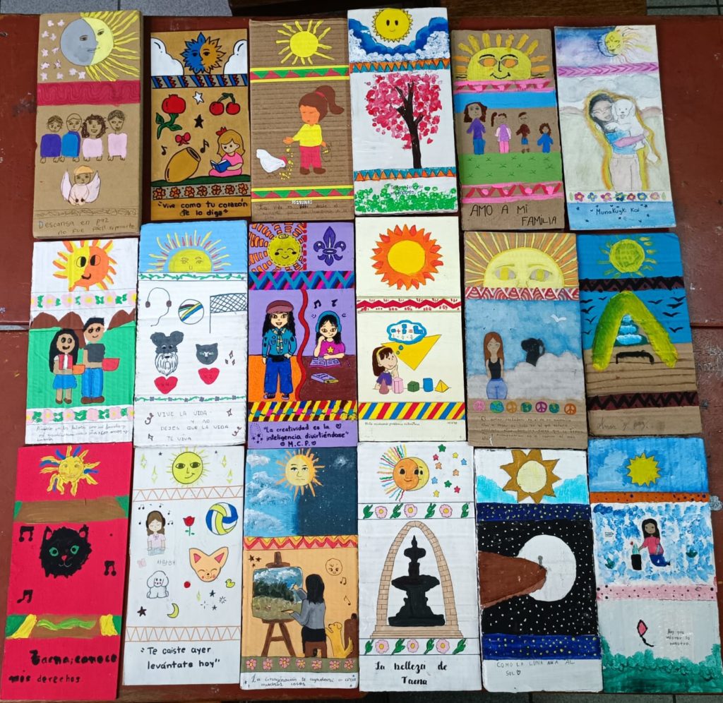 “El proyecto denominado “Arte popular que cuenta historias: Tablas de Sarhua” se desarrolla en la ciudad de Tacna, la intencionalidad que nos guió, fue lograr conocer más sobre esta expresión artística que atesora la memoria de toda una comunidad… las tablas de Sarhua: el arte popular que cuenta historias.