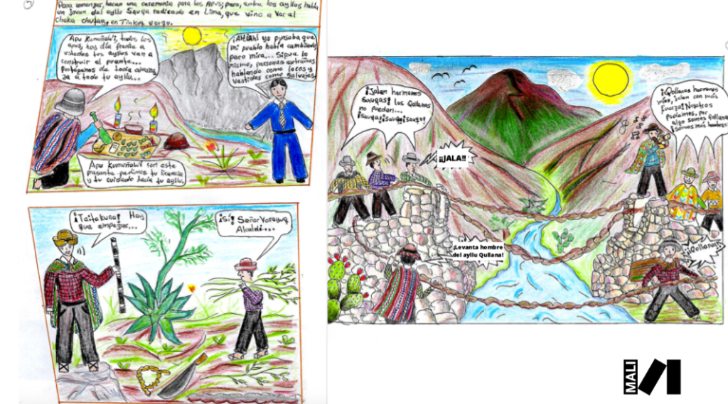 El proceso de desarrollo y trabajo en clase para crear “Yachayninchikmanta, yachanapaq” se estructuró en torno a la colaboración y la participación activa de los estudiantes. La idea era no solo enseñar sobre la pieza original y su contexto, sino también fomentar la investigación individual y la conexión personal con la temática. Se alentó a los estudiantes a explorar sus propias raíces culturales, entrevistar a personas mayores de la comunidad y sumergirse en la tradición oral para comprender la importancia de aprender de los “Yachaq/sabios-as”.