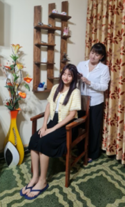 “Mi trabajo fotográfico está adaptado a la obra “Sirvienta espulgando su ama” de Pancho Fierro. La fotografía fue realizada con una cámara de celular e inspirada en un recuerdo y etapa muy importante de mi niñez. El motivo de mi elección es inicialmente el vínculo cercano entre mi madre y yo, debido a que me vi reflejada en aquella acción junto cuando ella me peinaba en mi niñez, sin tomar relevancia al título de este. Empecé a recordar otros momentos inolvidables de aquella etapa que pasé junto a ella. (…)