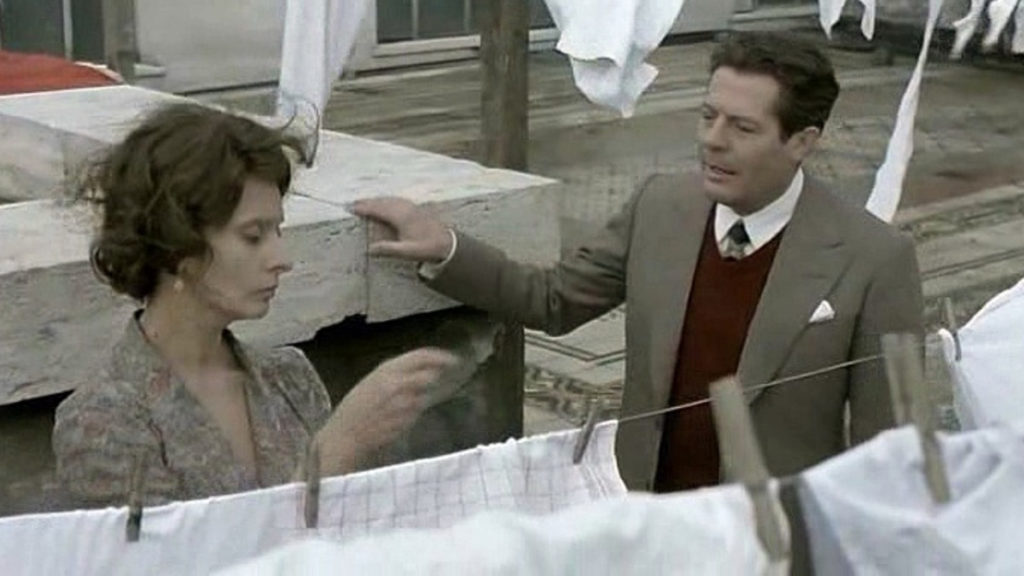 Desde los tiempos de Esquilo entendemos la dramaturgia como la relación que existe entre el personaje y la acción. Y como todos sabemos, lo más difícil en cualquier obra es hacer evolucionar al protagonista. De ahí que hablemos de alta dramaturgia cuando un personaje protagónico evoluciona radicalmente (Michael Corleone en El Padrino) o de dramaturgia pobre cuando el protagónico casi no evoluciona (James Bond). Pues bien, en Un día muy particular Ettore Scola nos da una clase de altísima dramaturgia haciendo evolucionar no a uno, sino a dos personajes totalmente antagónicos para llevarlos a un clímax que al comenzar la cinta nos parecía imposible. Todo ello teniendo como telón de fondo uno de los acontecimientos más importantes del siglo XX.