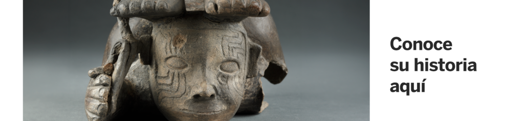 Esta botella de estilo Cupisnique representa a un personaje masculino con el cuerpo contorsionado. Su figura alargada y flexible realiza una posición extrema, con los pies grácilmente apoyados sobre la cabeza mientras el peso de su cuerpo se concentra sobre su pecho y los brazos. La identidad de este personaje es un enigma, sin embargo, los detalles que el artesano plasmó en esta figura de arcilla nos brindan algunas ideas sobre la función que pudo cumplir un individuo con estas características y habilidades hace unos tres mil años.