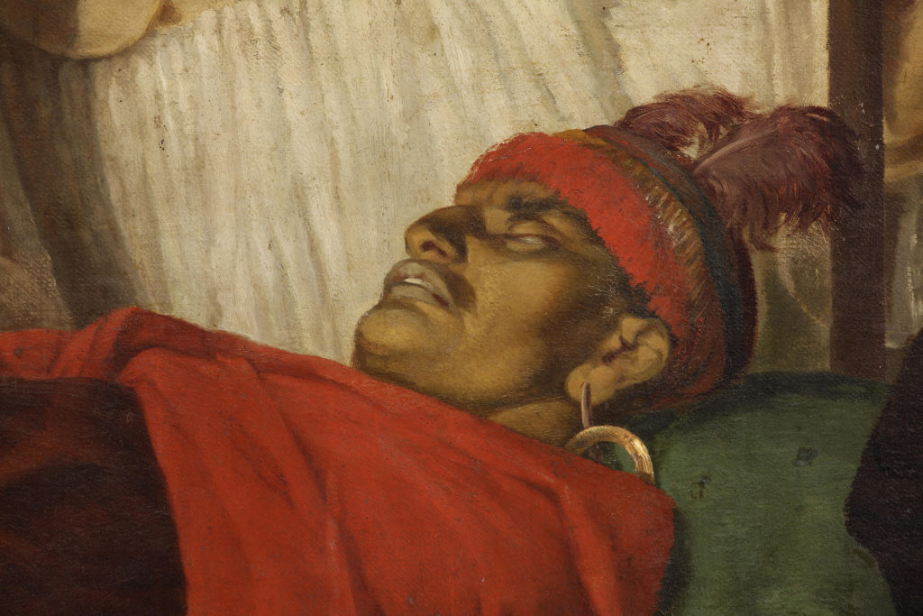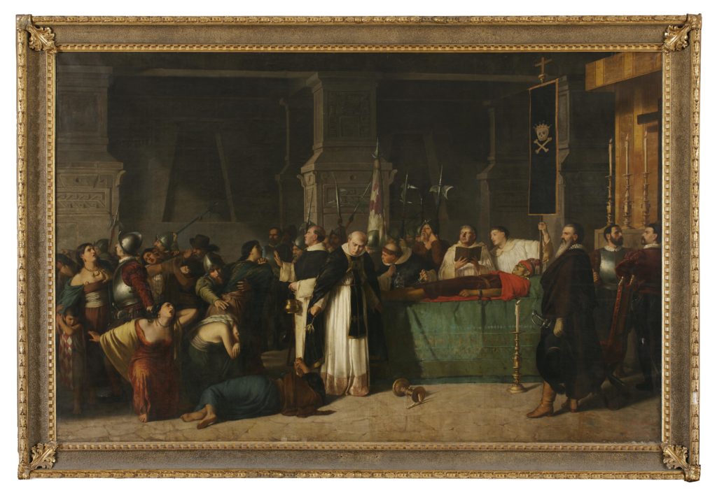 – Luis Montero (Piura, 1826 – Callao, 1869). Los funerales de Atahualpa. 1867. Óleo sobre tela. Pinacoteca Municipal Ignacio Merino, Municipalidad Metropolitana de Lima, en custodia en el Museo de Arte de Lima. Restaurado con el patrocinio de Volcán Compañía Minera S.A.A.