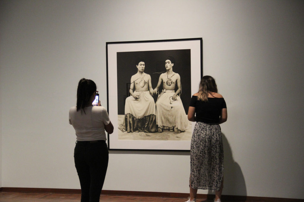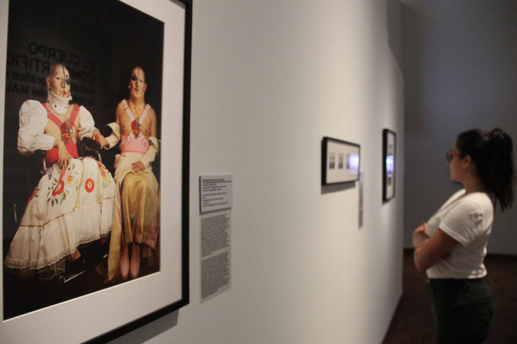La exhibición inicia con los icónicos retratos de las bailarinas Tórtola Valencia y Helba Huara –tomados respectivamente por Diego Goyzueta y los hermanos Carlos y Miguel Vargas en la década de 1910–, los cuales señalan uno de los momentos estelares de los estudios fotográficos en nuestro país. Se suman también algunas fotografías de Rómulo Sessarego, y sobre todo varias obras emblemáticas de la performance en la región, pertenecientes al colectivo chileno Las yeguas del Apocalipsis (Pedro Lemebel y Francisco Casas), Germain Machuca, Sergio Zevallos, la argentina Liliana Maresca y Elena Tejada Herrera.