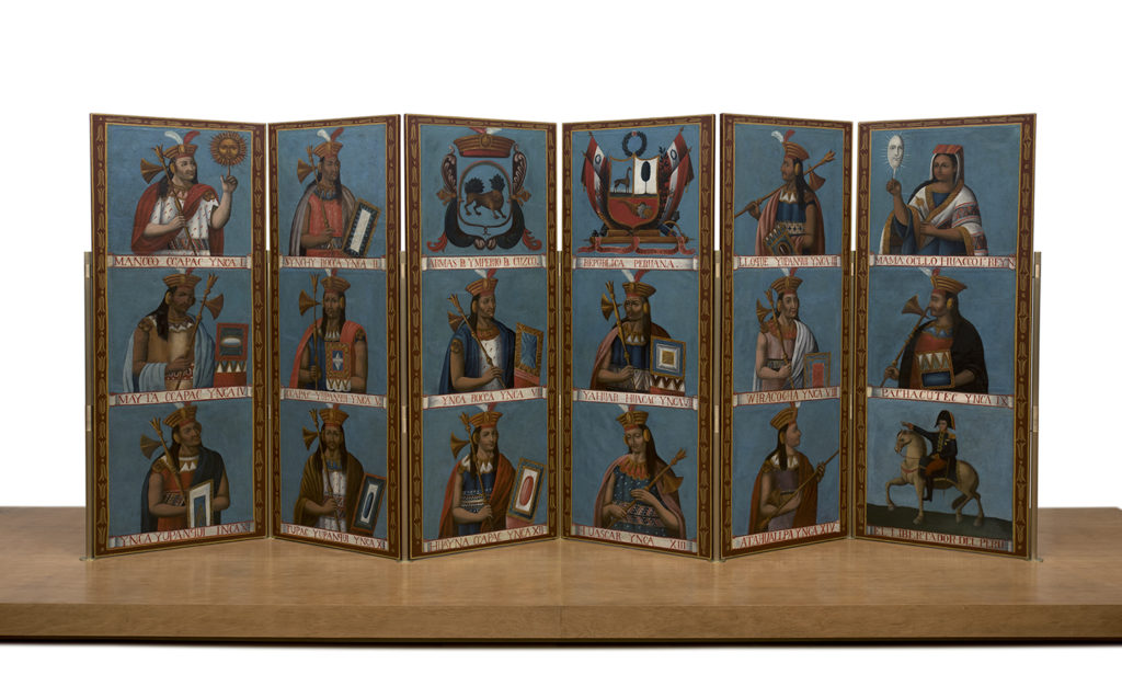 Esta pieza emblemática condensa distintas etapas del arte en el Perú: evoca el pasado precolombino en la forma de una genealogía de los incas, tema surgido en el periodo colonial para afirmar la idea de una continuidad legítima entre el antiguo Tahuantinsuyo y el imperio español.