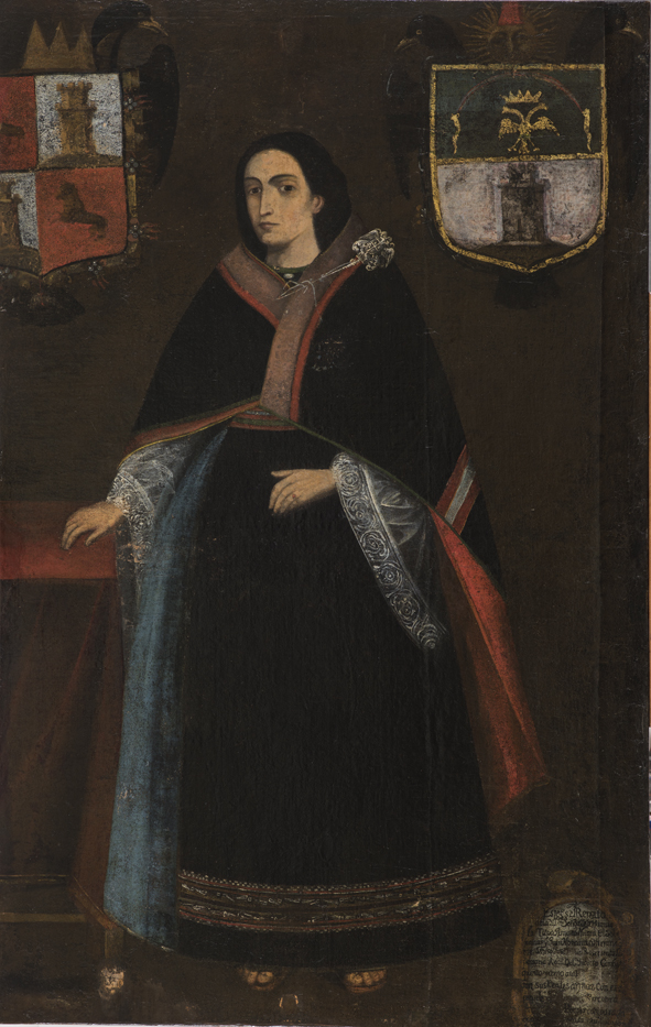 En una habitación sencilla y oscura emerge la figura de Manuela, cuya digna apariencia sintetiza toda la hibridez de esos años. Vestida con saya negra, que lleva un borde con diseños prehispánicos, usa lliclla del mismo color, ribeteada discretamente con colores cálidos. Esta pintura excepcional estuvo cubierta durante casi dos siglos, debido a la campaña que la corona española emprendió contra la nobleza indígena tras la derrota de la rebelión de José Gabriel Condorcanqui en 1781. Con mirada escrutadora, Manuela parece interpelar al espectador, que aún se pregunta por el papel que a la nobleza inca le cupo desempeñar en los convulsos años del siglo XVIII.
