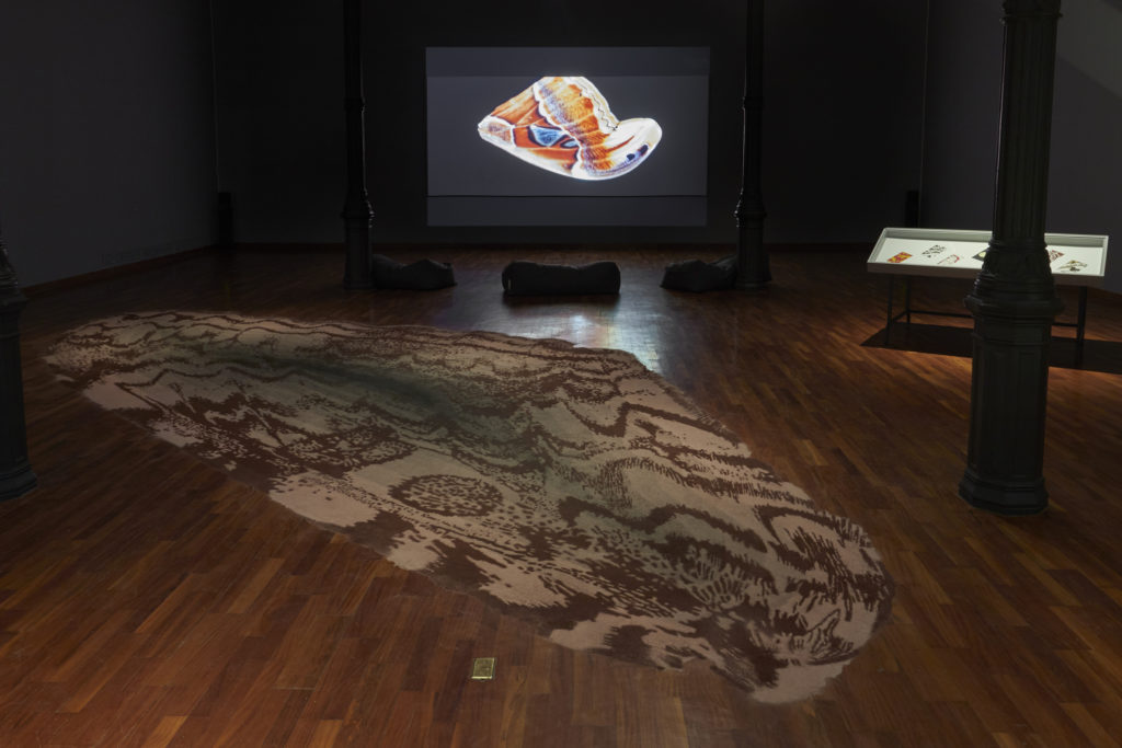 En tanto, en la sala 2 se presentará la proyección del video Atlas, secuencia que rinde homenaje a la escena Star Gate de la película 2001: Odisea del Espacio del director estadounidense Stanley Kubrick, y cuyas tomas reproducen los patrones abstractos de las alas de 25 especies distintas de mariposas diurnas y nocturnas. El video será acompañado por una pieza de piso hecha con arena y tierras de colores titulada Mandala, que explora los mismos patrones de las banderas conectando los diferentes espacios de la muestra.