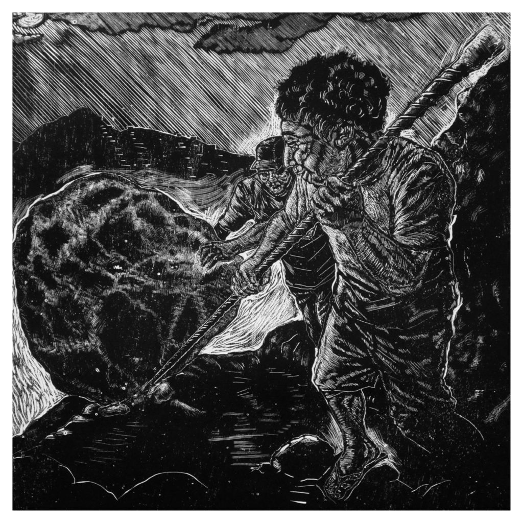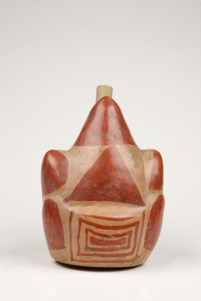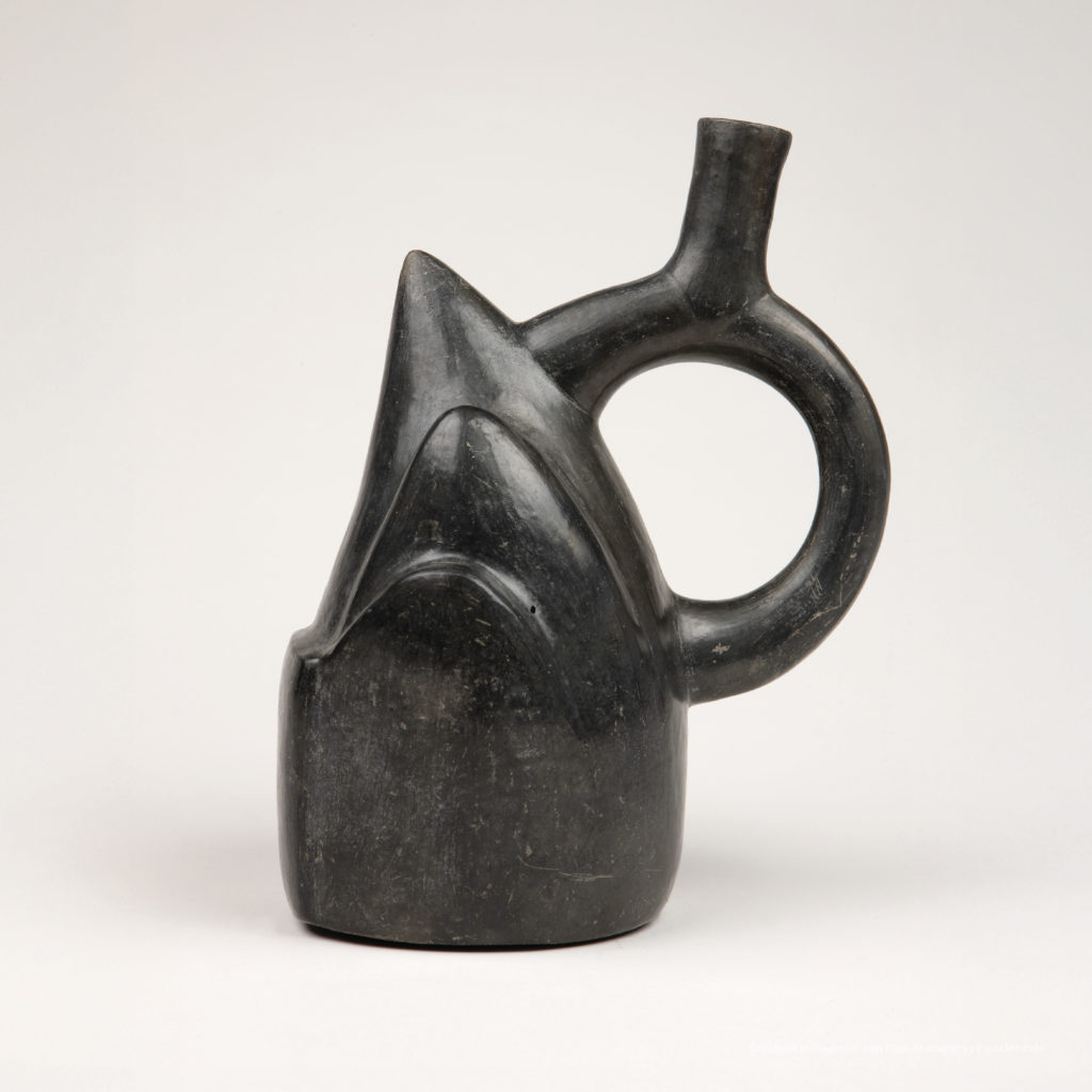 La botella muestra una cadena de montañas y una construcción articuladas a través de un pliegue que afirma la continuidad material y conceptual de ambas tanto en su modelado como en la realidad concreta del territorio. El pliegue no solo soluciona el problema de componer en una única forma varios temas o puntos de vista; es sobre todo un dispositivo general para entender la relación entre las cosas. Aun en la diferencia, asegura una relación de continuidad en la naturaleza de tal modo que el tránsito de una entidad a otra, de un lugar a otro es siempre posible. Esta percepción de unidad absoluta de seres y cosas ha existido desde siempre en la cultura de los Andes Centrales, abrigada por los cerros tutelares, y hoy se presenta imprescindible para superar los retos de convivencia en medio de la necesidad de extremar el cuidado del planeta.