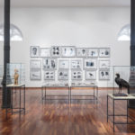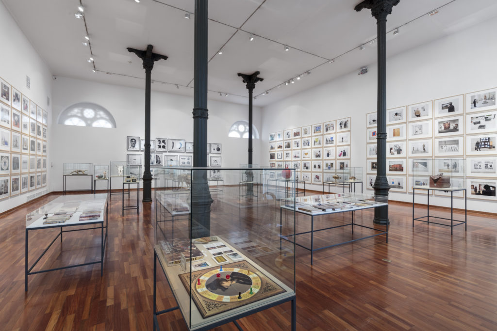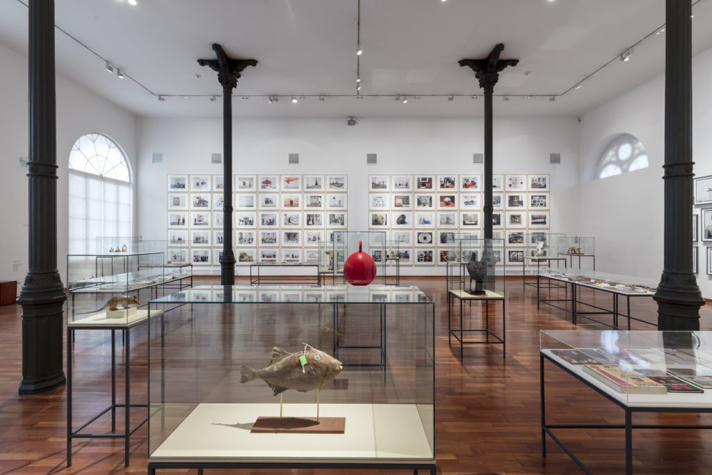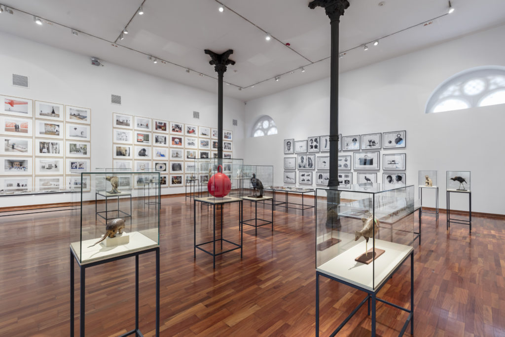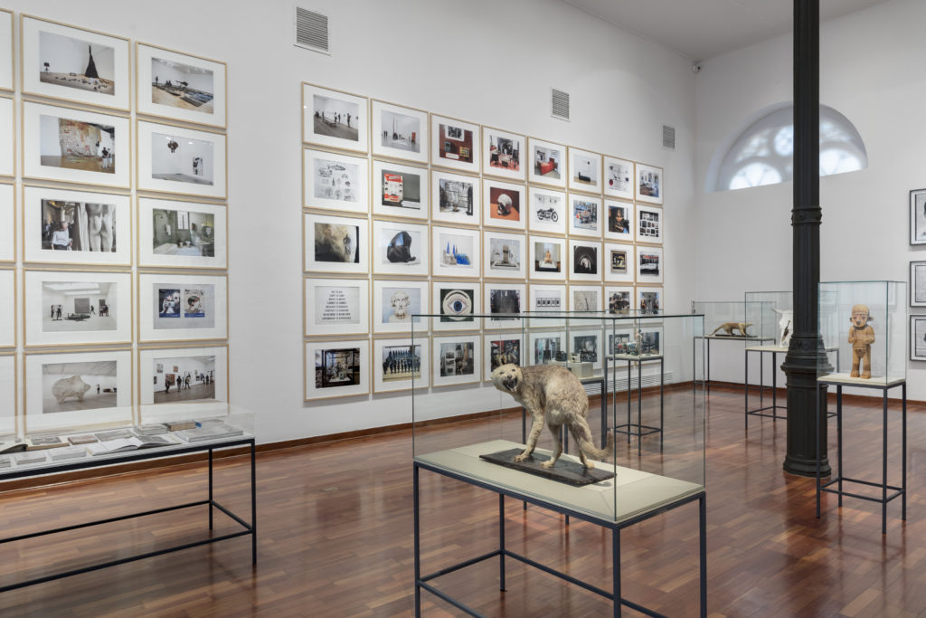 Las fotografías que rodean la totalidad de la sala se encuentran acompañadas de una cuidada museografía –concebida por el artista como parte integral de la propuesta– con mesas y vitrinas en las que se despliegan objetos y documentos. Se trata de una gran instalación en la que el artista es no solo de creador de imágenes, sino que asume el rol del curador y museógrafo para el desarrollo de un pequeño museo al interior del museo.