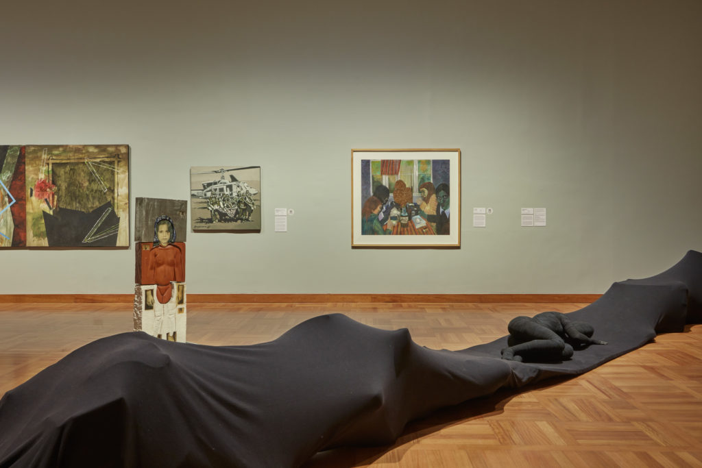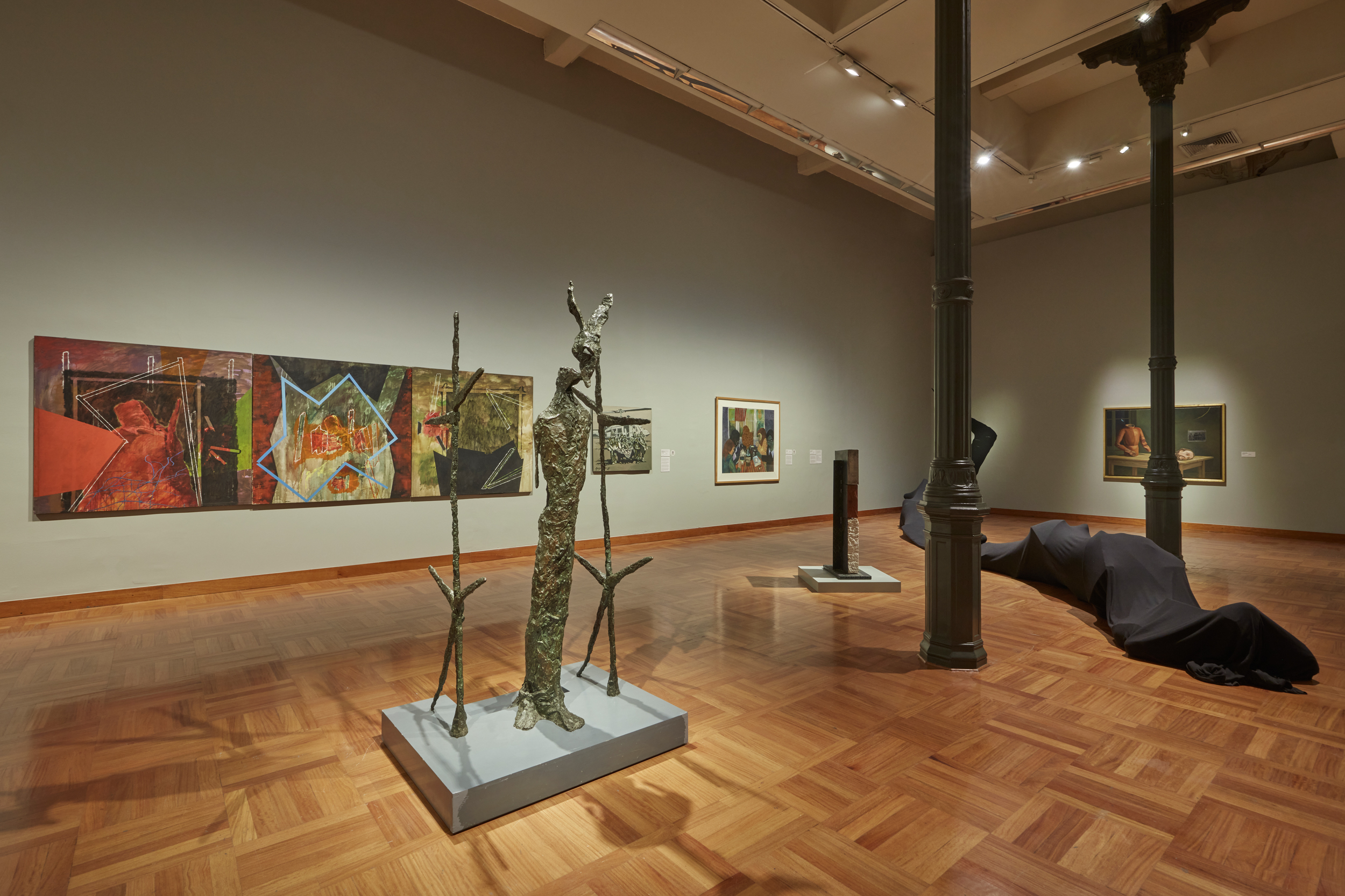 Incorporadas gracias a donaciones familiares o a la generosidad de los propios artistas, las obras que dan forma a esta exhibición son un importante testimonio de la vitalidad que ha mantenido la plástica local gracias a la labor de algunos de los creadores con más prestigio entre el público peruano. Agrupadas libremente alrededor de ejes temáticos abiertos y que acaso funcionan en tensión, las piezas se debaten entre la nueva figuración y lo abstracto. En varias de ellas se hace patente el diálogo con referentes de vanguardias históricas como el surrealismo y el expresionismo. Otras buscan dar cuenta de la realidad social y la violencia de la década de 1980, lo que daría paso a un tipo de mirada que privilegia la ironía y el azar.